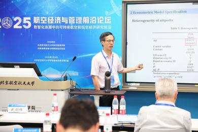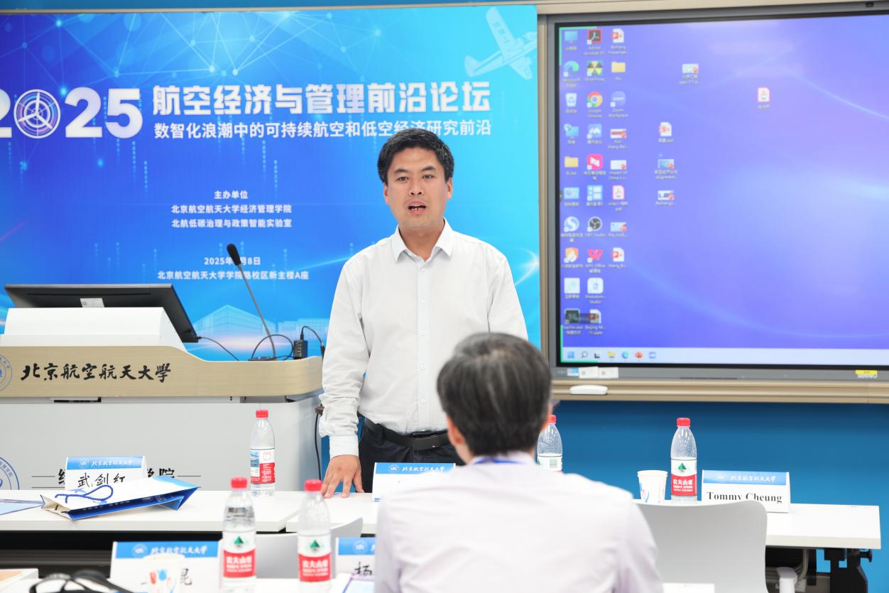 7月8日,2025航空经济与管理前沿论坛在德赢官网Vwin举行。本次会议由北航低碳治理与政策智能实验室教育部文科实验室(LLIG)、北航经管学院绿色航空研究中心(GARC)主办。此次会议有来自加拿大不列颠哥伦比亚大学、加拿大蒙特利尔高等商学院、澳大利亚斯威本科技大学、澳大利亚悉尼大学、香港理工大学、清华大学、德赢AC米兰官网、中国商飞公司、南京航空航天大学、北京交通大学、对外经济贸易大学、北京工业大学、中国石油大学(北京)、中国石油大学(华东)、北京中医药大学、北京物资学院等10余所高校、研究机构的40余位专家学者、师生代表参加会议。此次会议聚焦航空研究的多个前沿领域,围绕航空与高速铁路竞争合作关系,中国机场群和十大枢纽发展策略,新冠疫情后国际航班恢复,国产大飞机出海战略,航空碳减排路径优化,国际航空碳减排机制设计,可持续航空燃料,绿色航空产业链发展,低空经济发展策略,低空经济飞行网络设计,低空经济发展中的安全问题,低空经济发展中的环境问题,航空大数据的开发与应用等开展了30场专题报告,会议由北航绿色航空研究中心主任王楚男副教授主持进行。