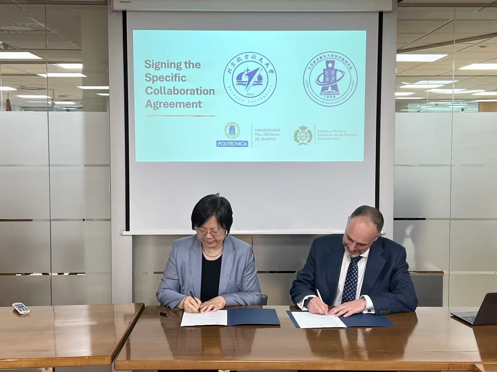 在马德里理工大学(UPM)访问期间,代表团会晤了马德里理工大学副校长Luis Salgado和副校长Juan Manuel Munoz,与马德里理工大学计算机学院院长Ricardo Imbert、副院长Antonio Jesus Diaz Honrubia,副院长Julio Marino举行会谈。双方充分交流,达成了在教师互访、学生互访、和其他教学科研方面的合作意向。Luis Salgado副校长、Ricardo Imbert院长与范英院长签署了包含上述合作意向在内的合作意向书。