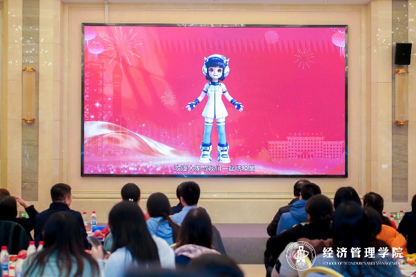 表彰大会环节,由领导力与组织管理系教师马琳、金融系教师金昊及数字人主持人智小航共同主持,以严谨有序又兼具科技感与人文情怀的形式拉开盛会序幕。