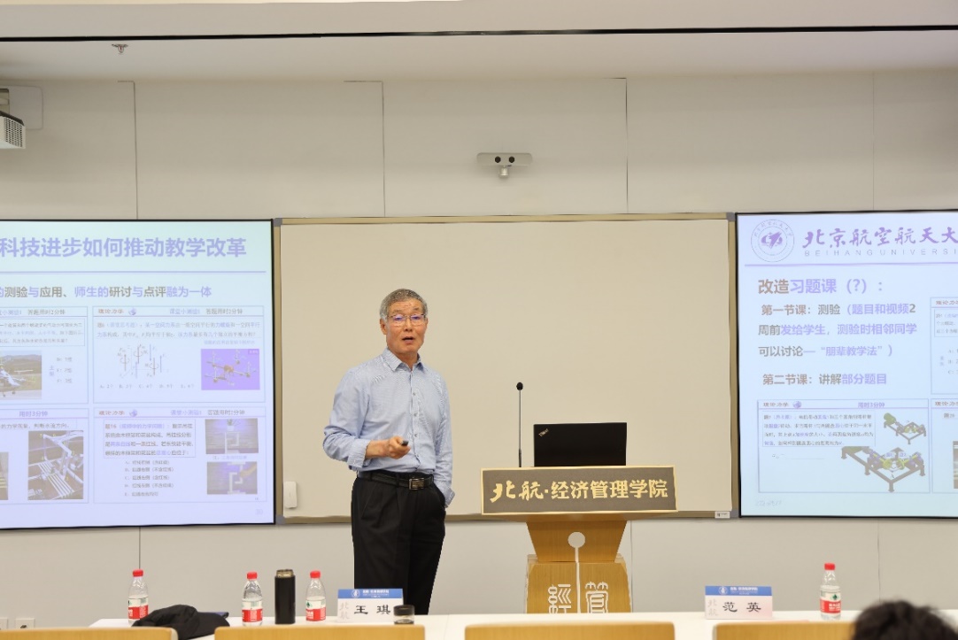 5月7日下午,由经管学院联合北航教师发展中心举办的“科技进步与教学改革”专题讲座在新主楼A618顺利举行。讲座特邀国家级教学名师王琪教授担任主讲嘉宾。本次讲座由经管学院院长范英教授主持。