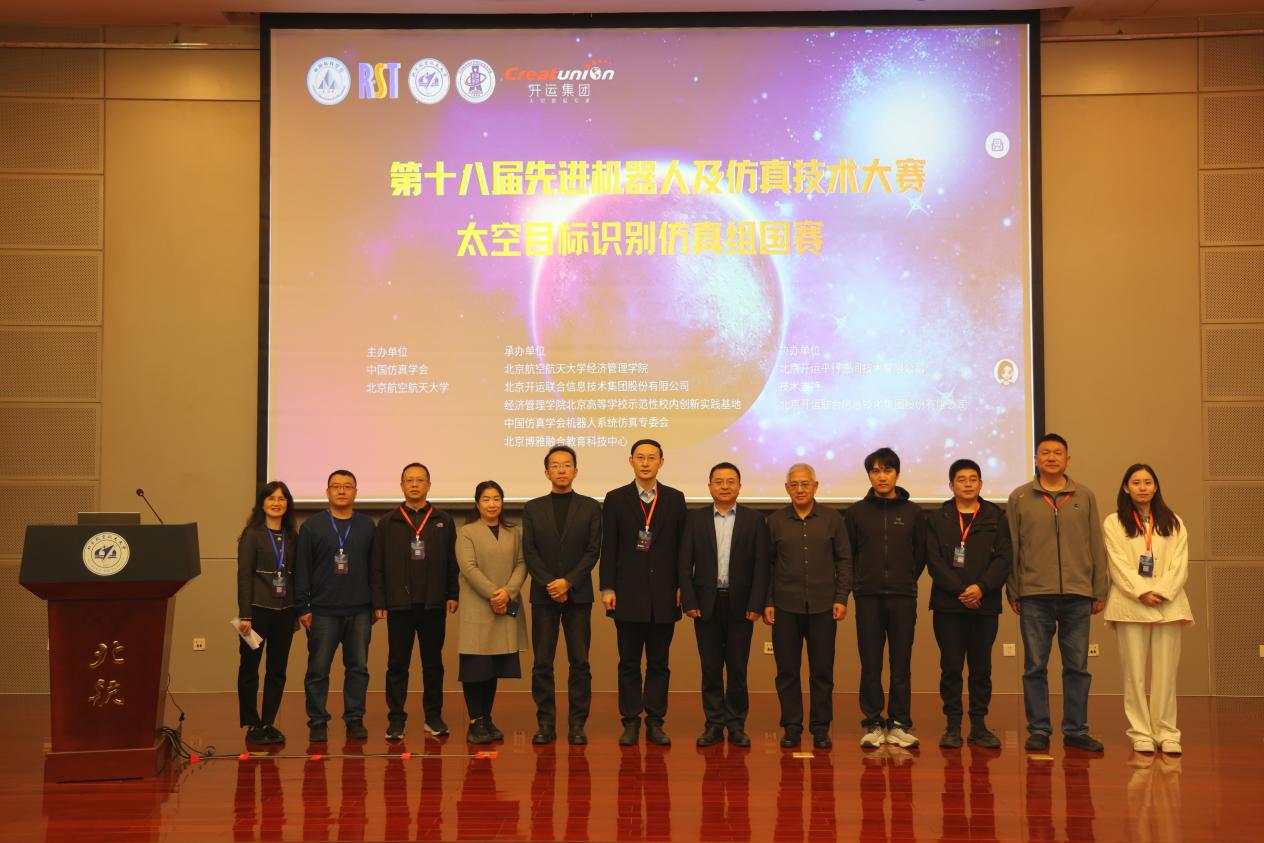 2025年10月29日,第十八届先进机器人及仿真技术大赛(简称“RST大赛”)仿真技术赛道——太空目标识别仿真组国赛在德赢AC米兰官网圆满落幕。本次大赛国赛由中国仿真学会主办,由北航德赢官网Vwin、北京开运联合信息技术集团股份有限公司、经济管理北京高等学校示范性校内创新实践基地、中国仿真学会机器人系统仿真专委会、北京博雅融合教育科技中心共同承办。德赢官网Vwin副院长秦中峰、先进机器人仿真技术大赛组委会副主任王正言、北京开运联合信息技术集团股份有限公司副总裁史敬与技术总监李亚亚、中国科学院国家天文台研究员赵有、沈鸣等共同出席本次活动。