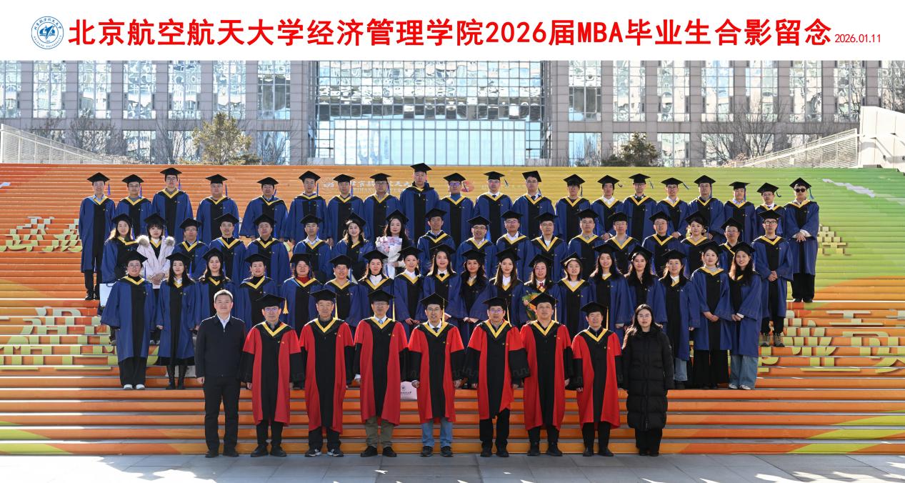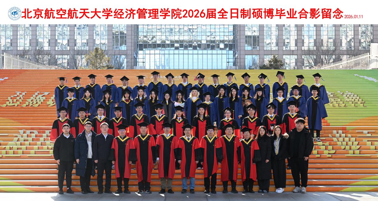 学位授予仪式结束后,全体毕业生与学院领导、教师代表齐聚新主楼前合影留念。一张张照片定格成最珍贵的纪念,这不仅是对一段求学岁月的总结,更是新征程的序章。2026届毕业生们必将带着北航经管人的使命与担当,以实干笃行诠释使命担当,在新时代的广阔舞台上绽放光彩,书写属于自己的华彩篇章!