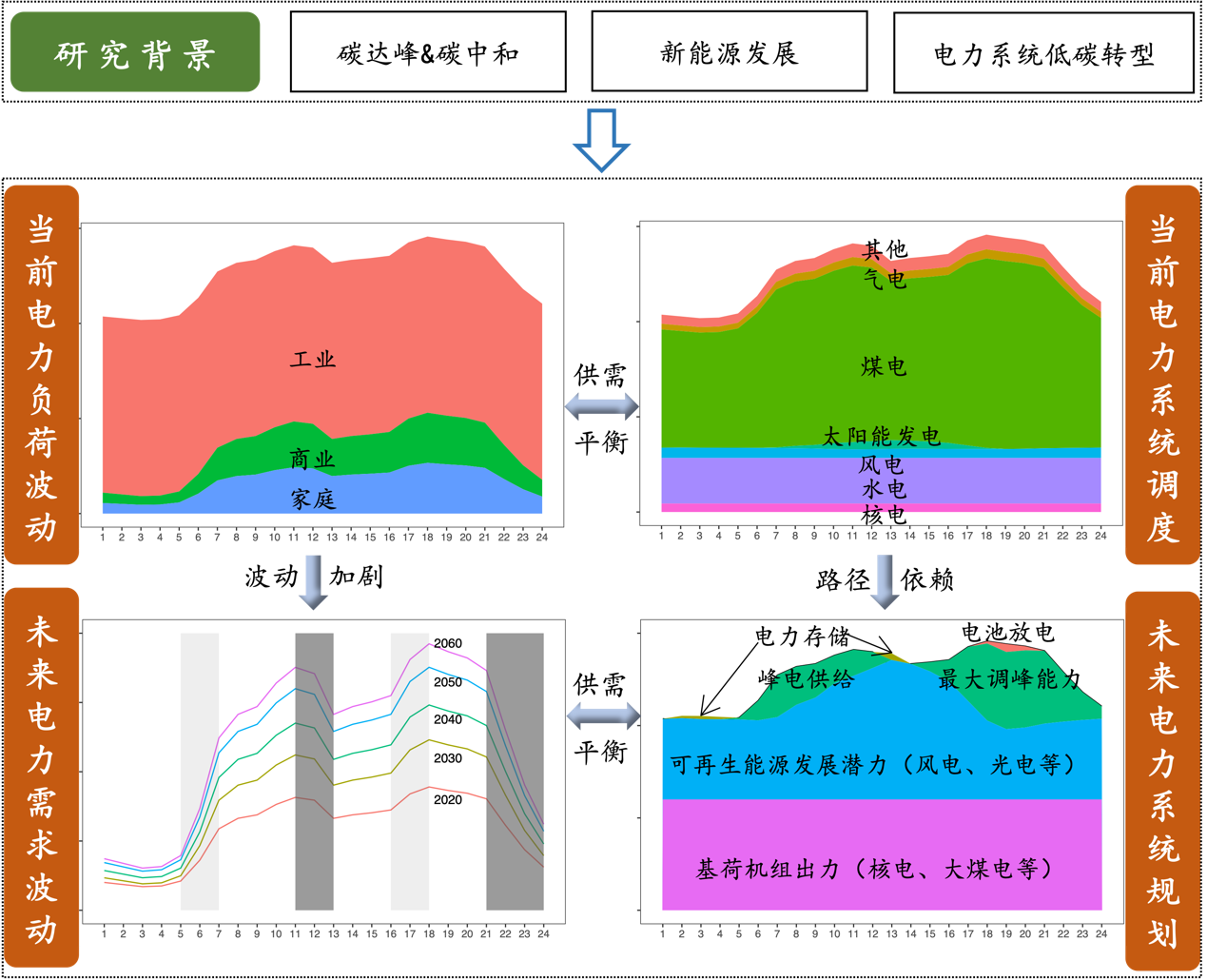 √ 科学上,从电力系统整体视角,面向新能源发展和电力系统低碳转型,揭示“源-网-荷-储”影响低碳电力系统的复杂机理机制,探究“源-网-荷-储”协同实现最优低碳电力系统发展的科学方案。
