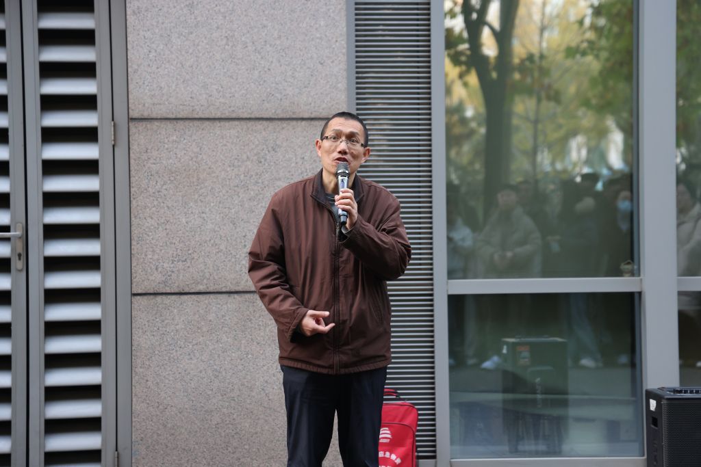 到达指定集合地点后,由安全保卫部王庆华老师讲话,他指出,学校安全用电至关重要,它不仅关系到师生的生命财产安全,也直接影响到学校正常的教学秩序和社会的和谐稳定。他提到我们日常经常发现的隐患如充电宝、USB台灯、手机充电器、电褥子,类似这种发生的火灾以往发生多起,要引起师生的重视,在实验室或者宿舍我们离开的时候要把电插板开关关上再离开,要养成安全用电的良好习惯。
