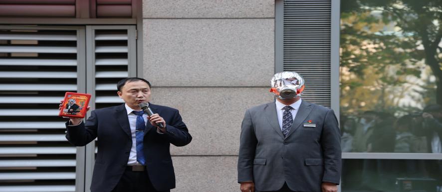 下午15点30分,新主楼A座1128房间模拟发现火情,院系郝乙老师发现火情,迅速按下附近的报警器,新主楼物业第一时间确认火情并出动微型消防队赶到现场开展模拟灭火工作,疏散演习此时准时开始。师生在物业及学院专项工作组成员的指引下,捂住口鼻,弯腰前行,快速从安全通道顺着楼梯下行到一层逃生,所有人员准确到达新主楼外东侧集合地点,顺利完成安全疏散工作。
