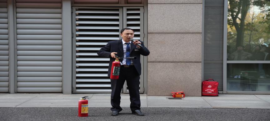新主楼物业经理现场给师生详细讲解了消防用品的使用方法,并实物介绍了灭火器的使用,以及教会大家灭火器使用要领。